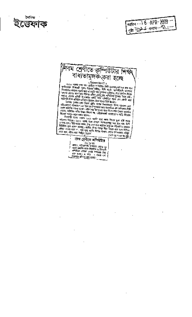 নবম শ্রেনীতে কম্পিউটার শিক্ষা বাধ্যতামূলক করা হচ্ছে Published on Newspaper দৈনিক ইত্তেফাক Category ICT Education Download