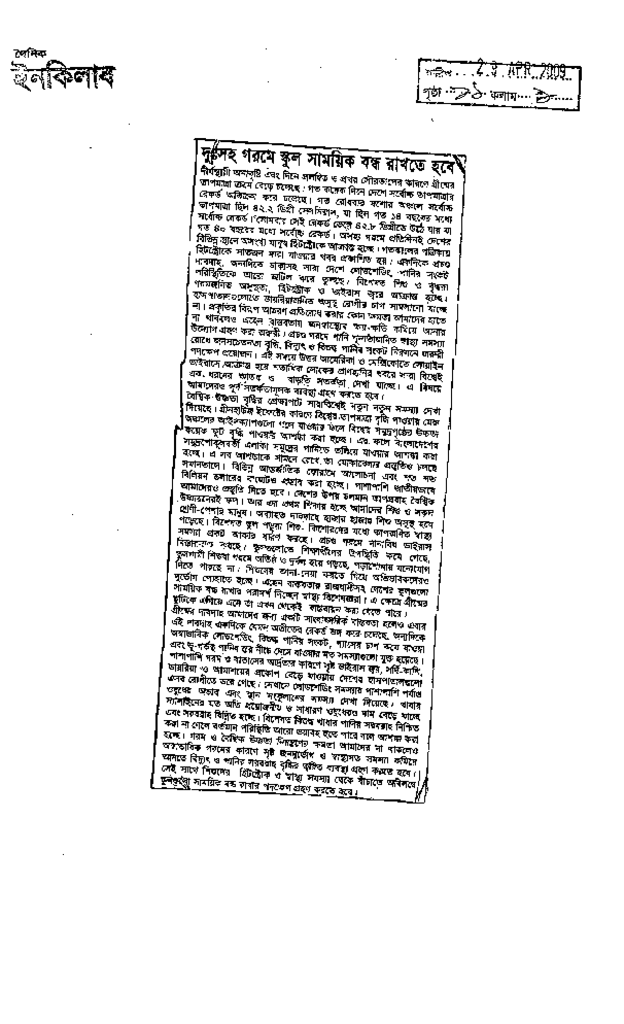 দুঃসহ গরমে স্কুল সাময়িক বন্ধ রাখতে হবে