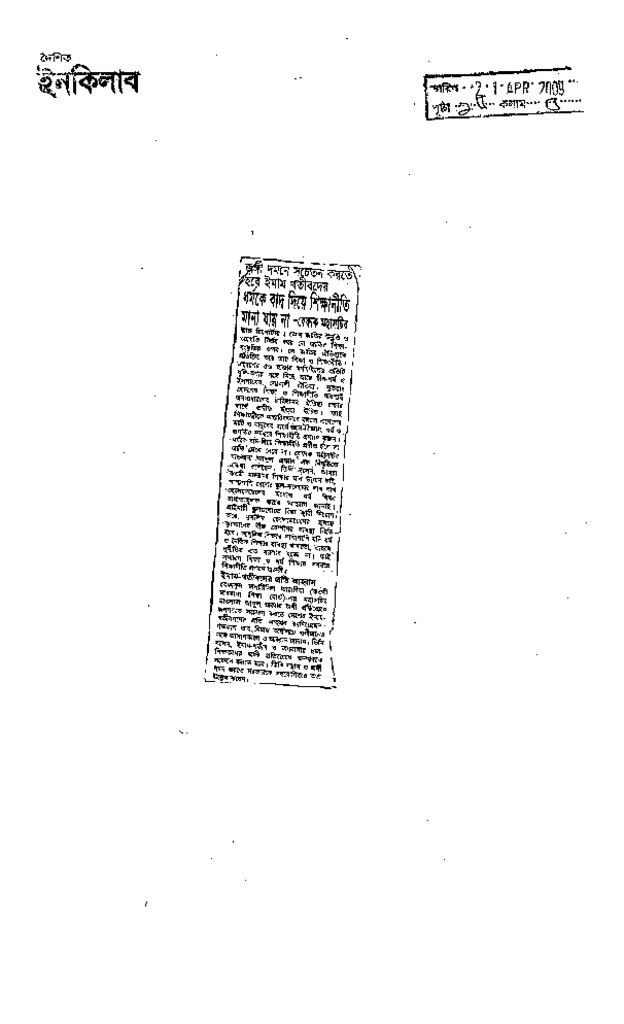 ধর্মকে বাদ দিয়ে শিক্ষানীতি মানা যায় না Published on Newspaper দৈনিক ইনকিলাব Category Personal Opinion / Discussion / Commentary Download