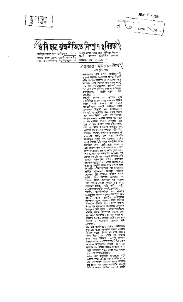 জাবি ছা্ত্র রাজনীতিতে নিষ্প্রাণ স্থবিরতা