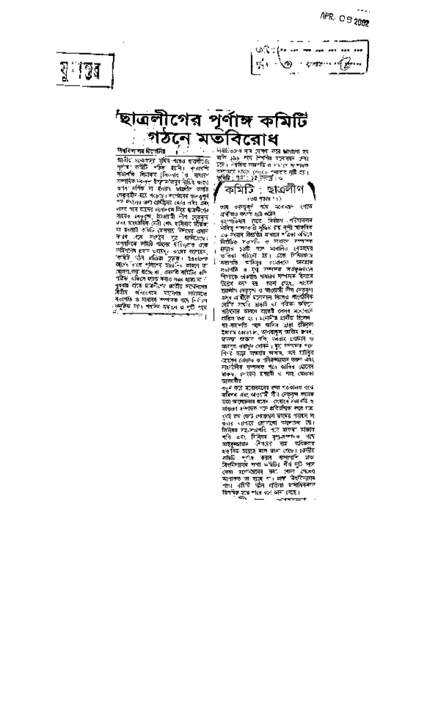 ছাত্রলীগের পূর্ণাঙ্গ কমিটি গঠনে মতবিরোধ Published on Newspaper দৈনিক যুগান্তর Category General Education Download