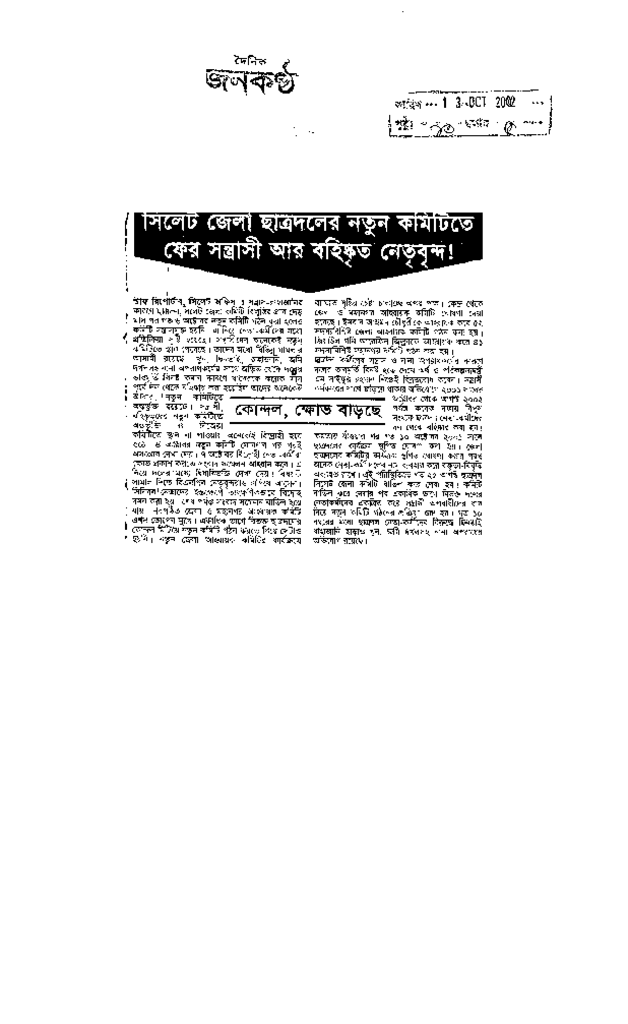 সিলেট জেলা ছাত্রদলের নতুন কমিটিতে ফের সন্ত্রাসী আর বহিস্কৃত নেতৃবৃন্দ Published on Newspaper দৈনিক জনকণ্ঠ Category Campus Terrorism Download