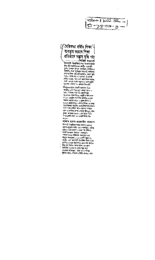 নৈতিকতা বর্জিত শিক্ষা ব্যবস্থার কারণে শিক্ষা প্রতিষ্ঠিানে সন্ত্রাস বৃদ্ধি