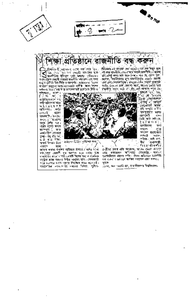 শিক্ষা প্রতিষ্ঠানে রাজনীতি বন্ধ করুন Published on Newspaper দৈনিক যুগান্তর Category Student Politics Download