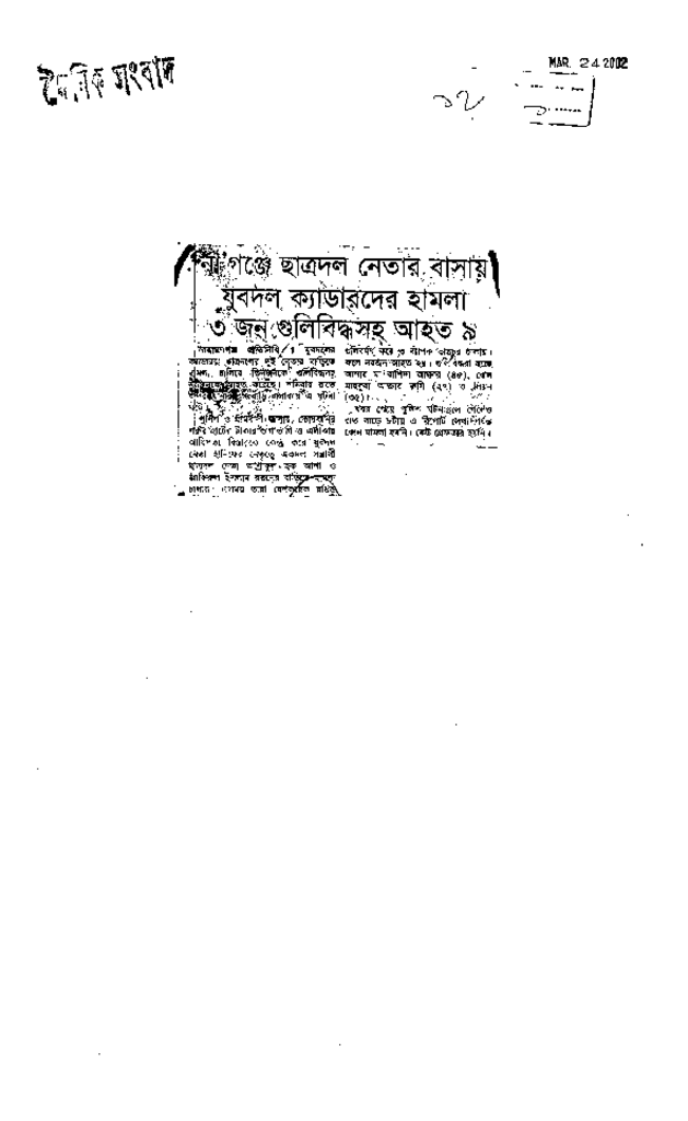 না'গঞ্জে ছাত্রদল নেতার বাসায় যুবদল ক্যাডারদের হামলা ৩ জন গুলিবিদ্ধসহ আহত ৯