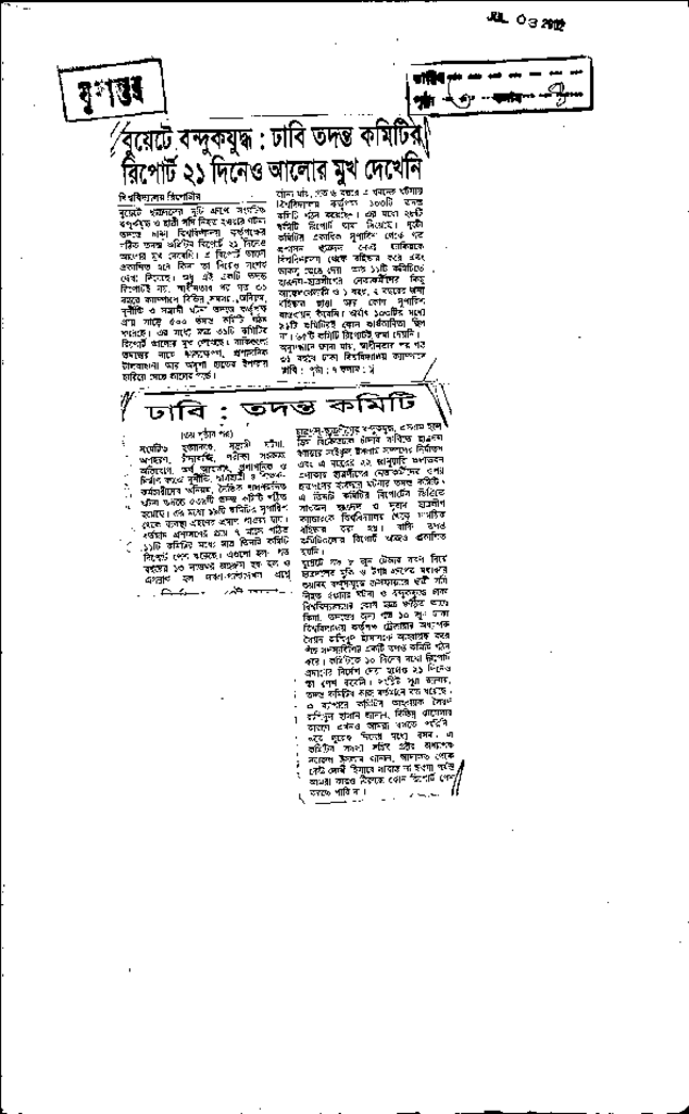 বুয়েটে বন্দুক যুদ্ধ : ঢাবি তদন্ত কমিটির রিপোর্ট ২১ দিনেও আলোর মুখ দেখেনি Published on Newspaper দৈনিক যুগান্তর Category Campus Terrorism Download