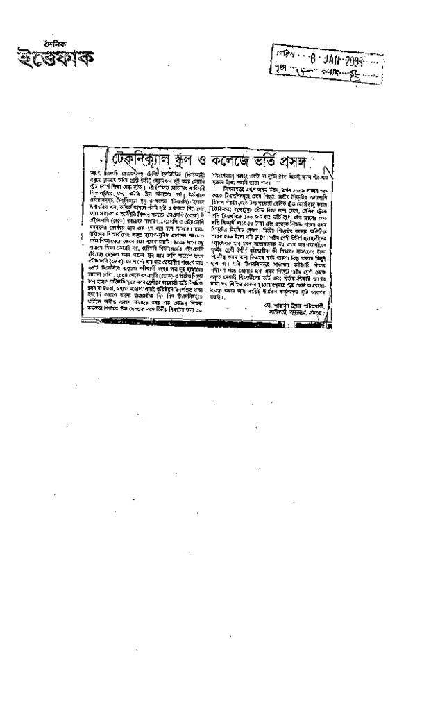 টেকনিক্যাল স্কুল ও কলেজে ভর্তি প্রসঙ্গ Published on Newspaper দৈনিক ইত্তেফাক Category ICT Education Download