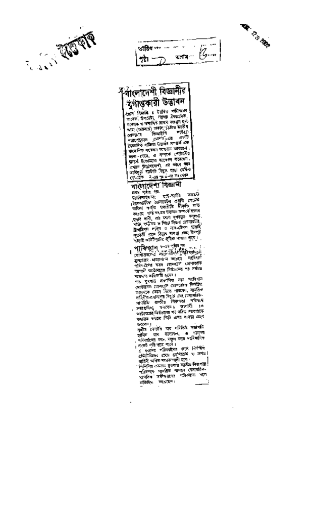 বাংলাদেশী বিজ্ঞানীর যুগান্তকারী উদ্ভাবন Published on Newspaper দৈনিক ইত্তেফাক Category Professional Education Professional Education Engineering Download