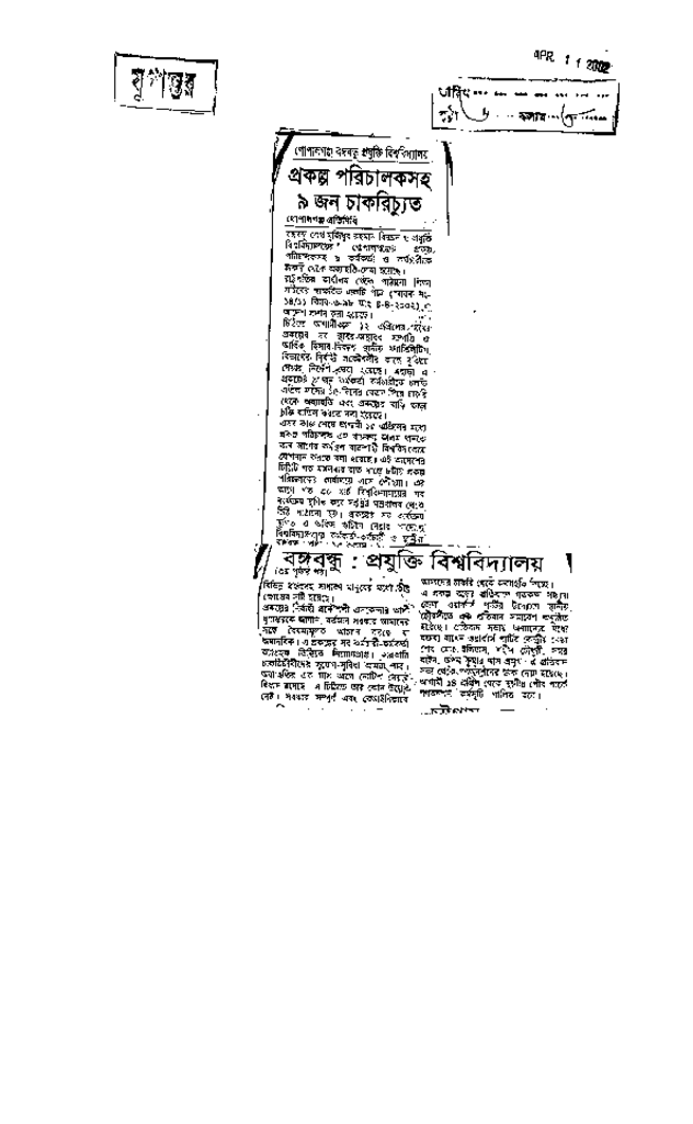 গোপালগঞ্জ বঙ্গবন্ধু প্রযুক্তি বিশ্ববিদ্যালয় : প্রকল্প পরিচালকসহ ৯ জন চাকরিচ্যুত Published on Newspaper দৈনিক যুগান্তর Category Science Education Download