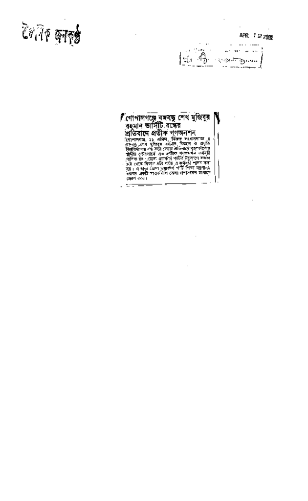 গোপালগঞ্জে বঙ্গবন্ধু শেখ মুজিবুর রহমান ভার্সিটি বন্ধের প্রতিবাদের প্রতিক গণঅনশন Published on Newspaper দৈনিক জনকণ্ঠ Category Science Education Download