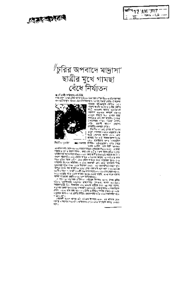 চুরির অপবাদে মাদ্রাসা ছাত্রীর মুখে গামছা বেধে নির্যাতন