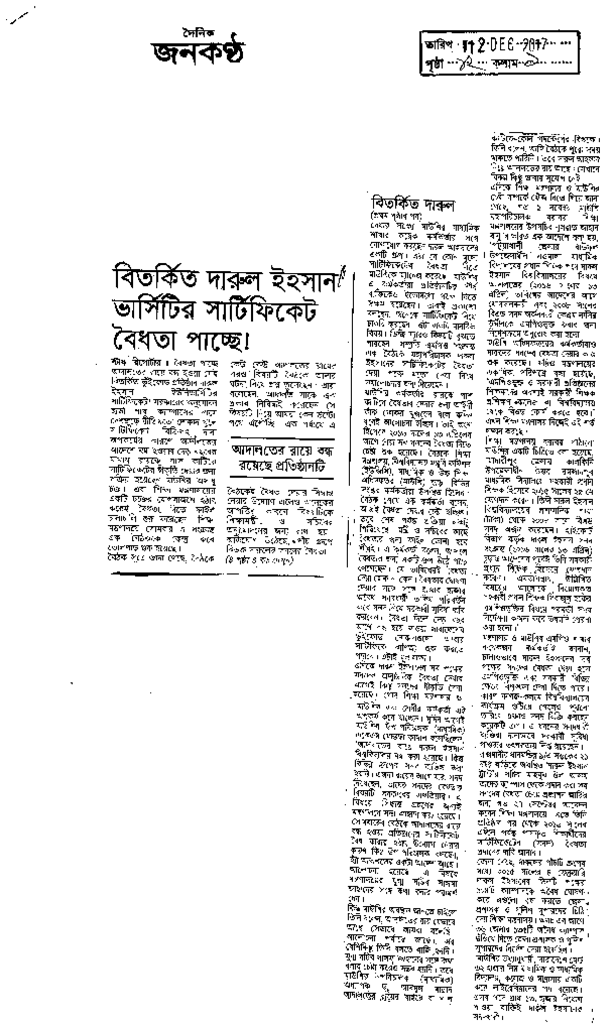 বিতর্কিত দারুল ইহসান ভার্সিটির সার্টিফিকেট বৈধতা পাচ্ছে! Published on Newspaper দৈনিক জনকণ্ঠ Category General Education General Education Higher Education Private Download