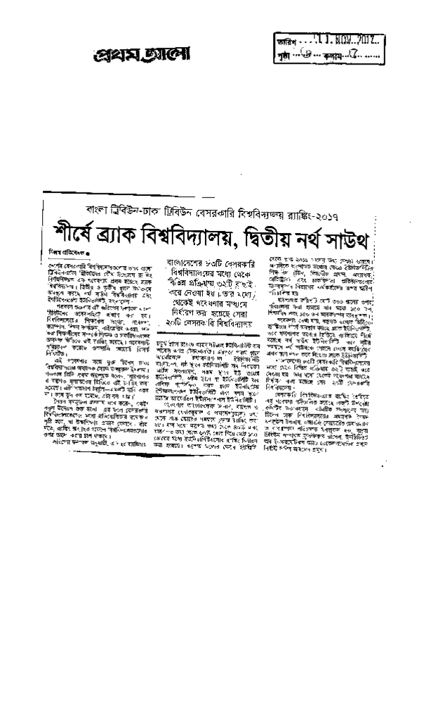শীর্ষে ব্রাক বিশ্ববিদ্যালয়, দ্বিতীয় নর্থ সাউথ Published on Newspaper দৈনিক প্রথম আলো Category General Education General Education Higher Education Private Download