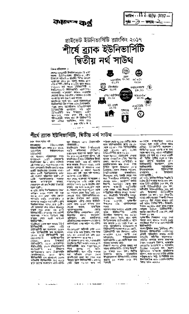 শীর্ষে ব্র্যাক ইউনিভার্সিটি দ্বিতীয় নর্থ সাউথ Published on Newspaper দৈনিক কালের কন্ঠ Category General Education General Education Higher Education Private Download