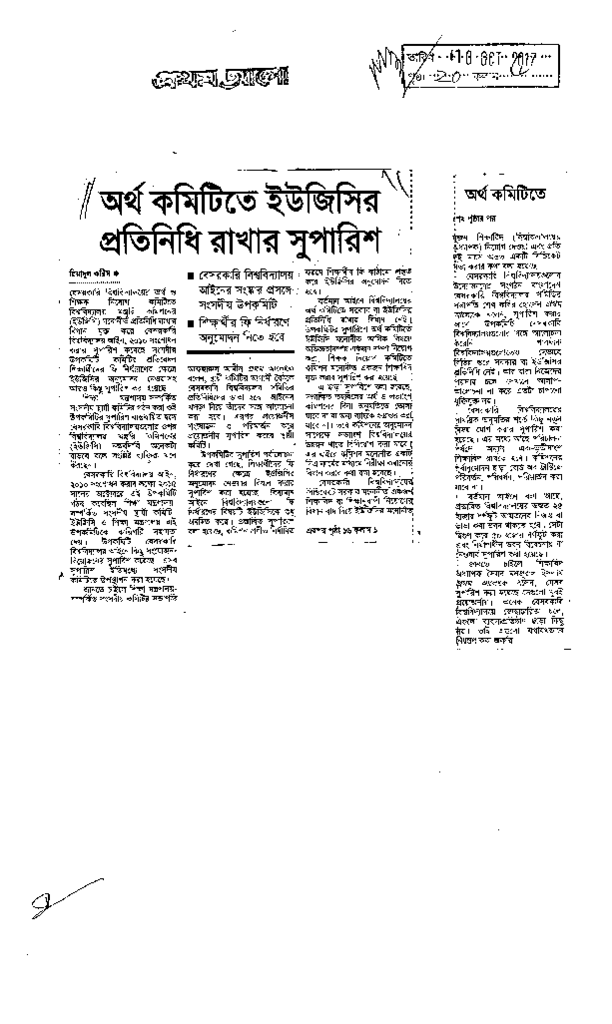অর্থ কমিটিতে ইউজিসির প্রতিনিধি রাখার সুপারিশ Published on Newspaper দৈনিক প্রথম আলো Category General Education General Education Higher Education Private Download