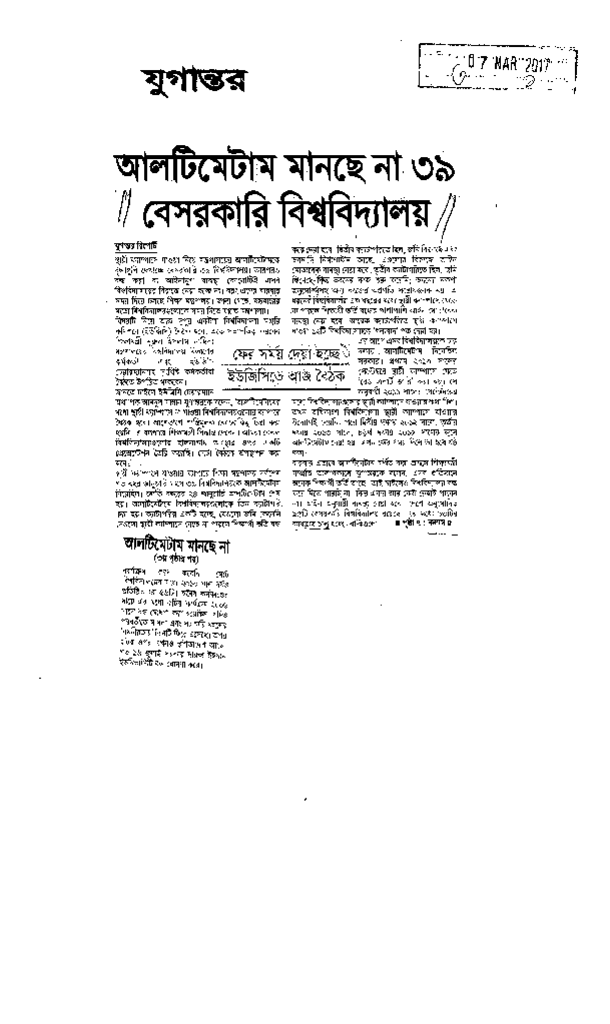 আলটিমেটাম মানছেনা ৩৯ বেসরকারি বিশ্ববিদ্যালয় Published on Newspaper দৈনিক যুগান্তর Category General Education General Education Higher Education Private Download