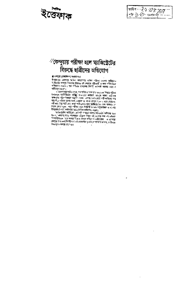 কেন্দুয়ায় পরীক্ষা হলে ম্যাজিস্ট্রেটের বিরুদ্ধে ছাত্রীদের অভিযোগ Published on Newspaper দৈনিক ইত্তেফাক Category Madrasah Education Madrasah Education Alia Download