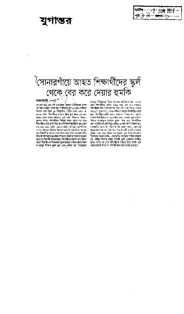 সোনারগাঁয়ে আহত শিক্ষার্থীদের স্কুল থেকে বের করে দেয়ার হুমকি Published on Newspaper দৈনিক যুগান্তর Category Personal Opinion / Discussion / Commentary Personal Speech / Discussion / Comentary Secondary and Higher Secondary Education Download