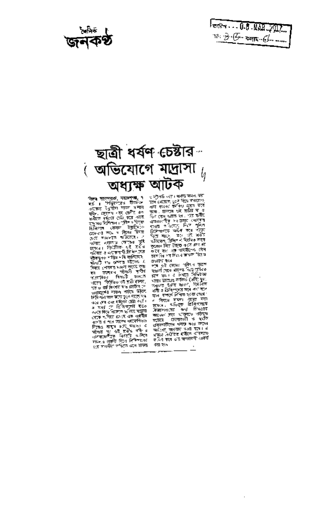 ছাত্রী ধর্ষণ চেষ্টার অভিযোগ মাদ্রাসা অধ্যক্ষ আটক Published on Newspaper দৈনিক জনকণ্ঠ Category Madrasah Education Madrasah Education Alia Download