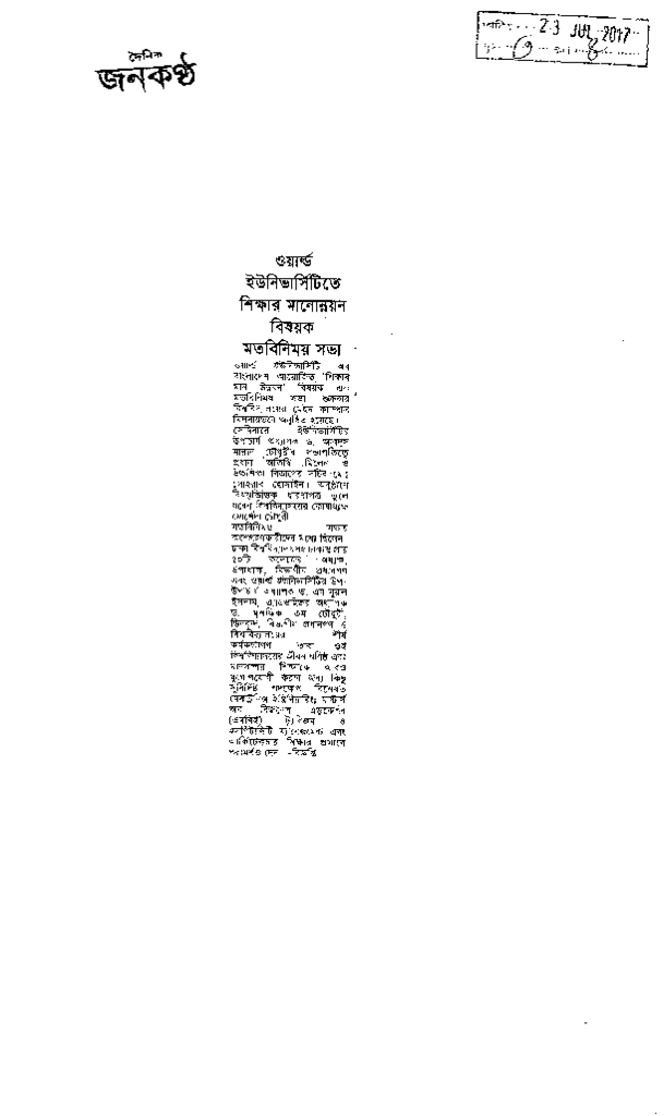 ওয়ার্ল্ড ইউনিভার্সিটিতে শিক্ষার মানোন্নয়ন বিষয়ক Published on Newspaper দৈনিক জনকণ্ঠ Category General Education General Education Higher Education Private Download