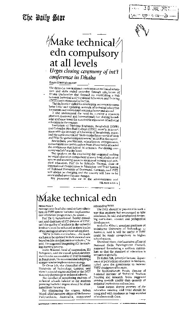 Make technical edn compulsory at all levels Published on Newspaper The Daily Star Category Technical and Vocational Education Download
