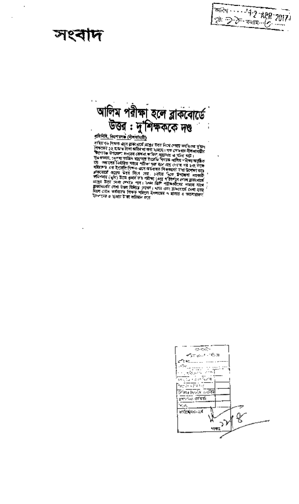 আলিম পরীক্ষা হলে ব্লাকবোর্ডে উত্তর : দু’শিক্ষককে দণ্ড Published on Newspaper দৈনিক সংবাদ Category Madrasah Education Madrasah Education Alia Download