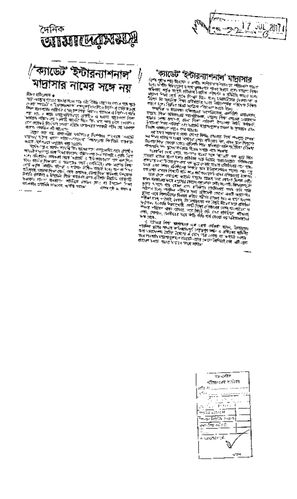‘ক্যাডেট’ ইন্টারন্যাশনাল’ মাদ্রাসার নামে সঙ্গে নয Published on Newspaper দৈনিক আমাদের সময় Category Madrasah Education Madrasah Education Alia Download