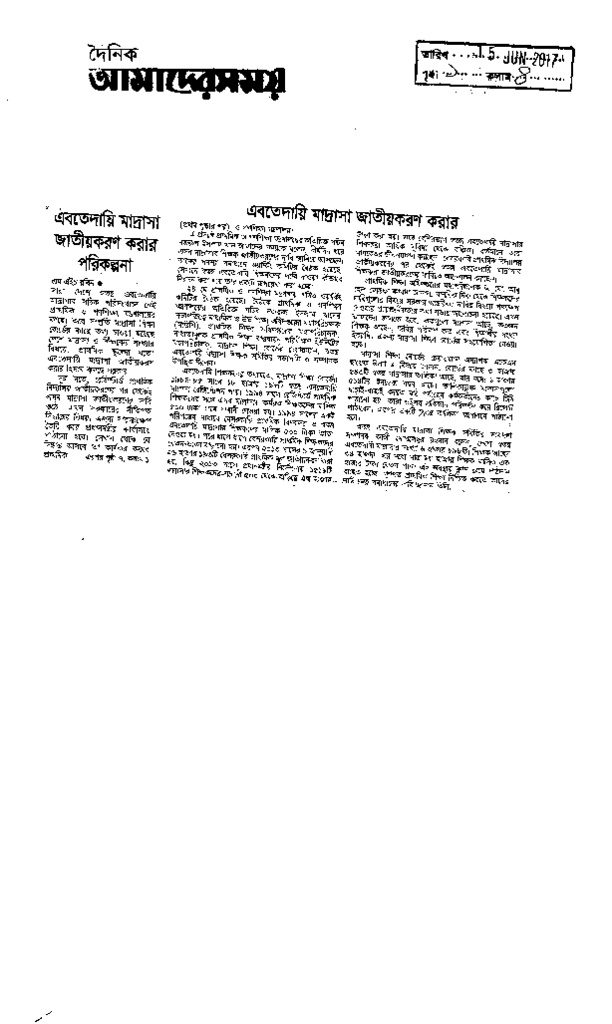 এবতেদায়ি মাদ্রাসা জাতীয়করণ করার পরিকল্পনা Published on Newspaper দৈনিক আমাদের সময় Category Madrasah Education Madrasah Education Alia Download