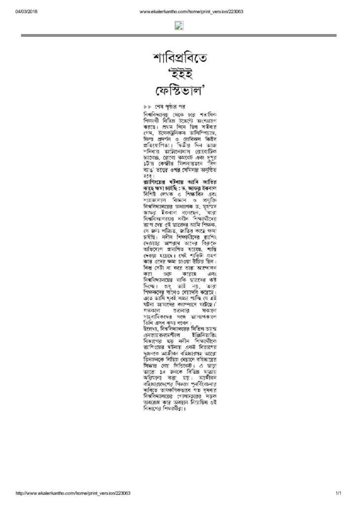 শাবিপ্রবিতে ইইই ফেস্টিভাল Published on Newspaper দৈনিক কালের কন্ঠ Category Science Education Download