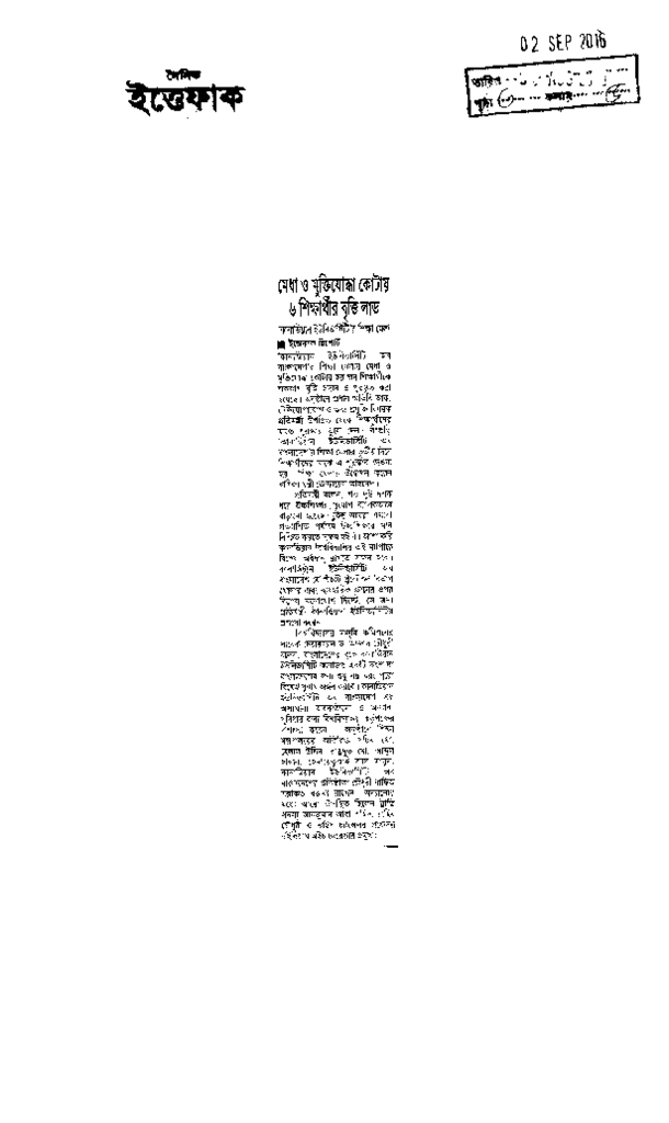 মেধা ও মুক্তিযোদ্দা কোটায় ৬ শিক্ষার্থীর বৃত্তি লাভ Published on Newspaper দৈনিক ইত্তেফাক Category General Education General Education Higher Education Private Download