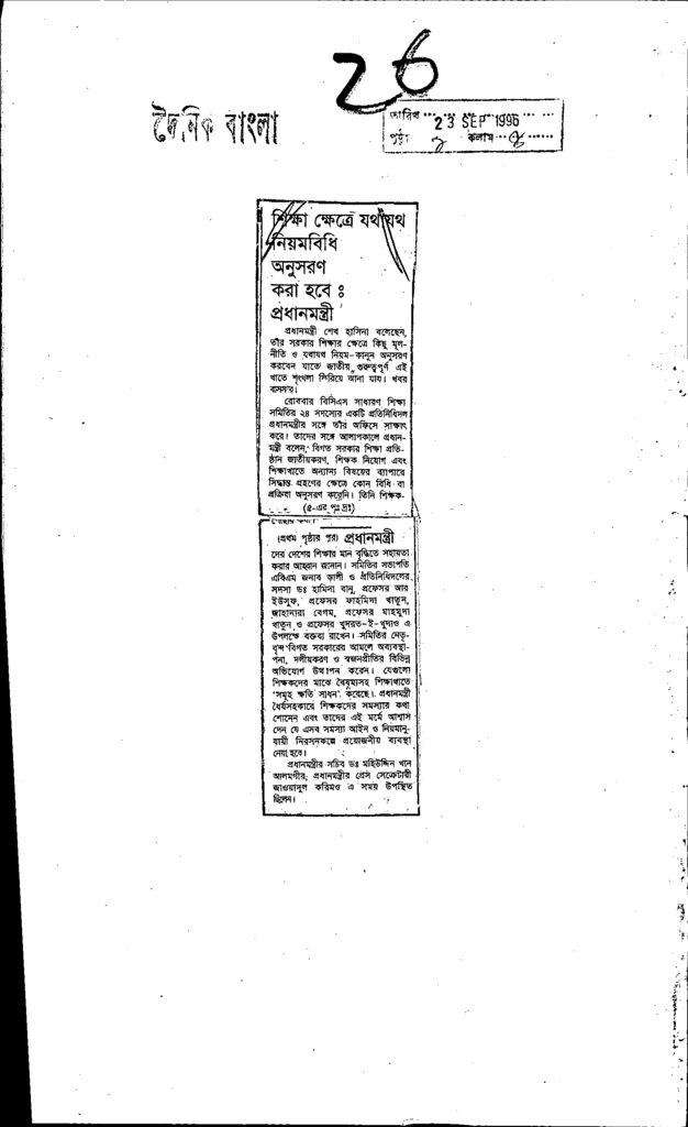 শিক্ষাক্ষেত্রেযথাযর্থনিয়মবিধিঅনুসরণকরাহবেঃপ্রধানমন্ত্রী Published on Newspaper দৈনিক বাংলা Category Personal Opinion / Discussion / Commentary Download