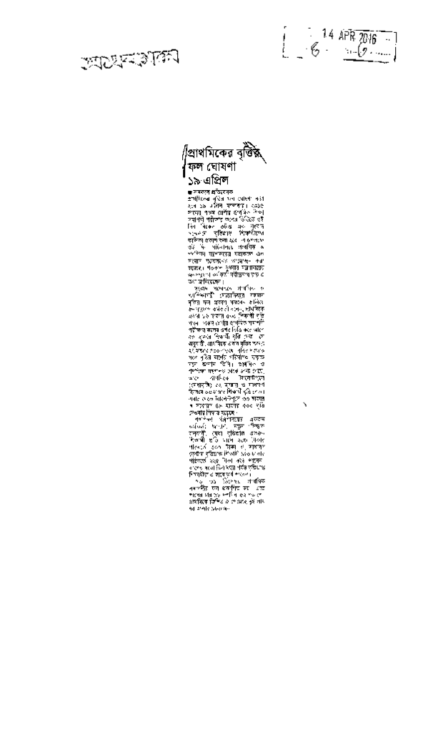 প্রাথমিকের বৃত্তির ফল ঘোষণা ১৯ এপ্রিল Published on Newspaper দৈনিক সমকাল Category General Education General Education Download