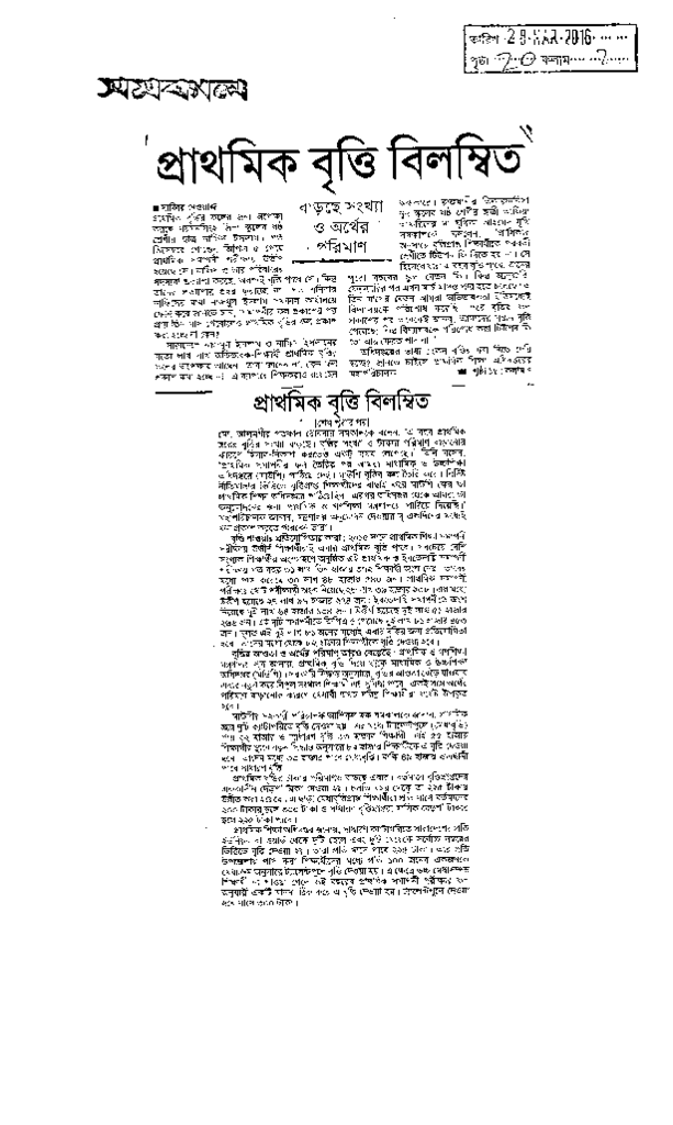 প্রাথমিক বৃত্তি বিলম্বিত Published on Newspaper দৈনিক সমকাল Category General Education General Education Download