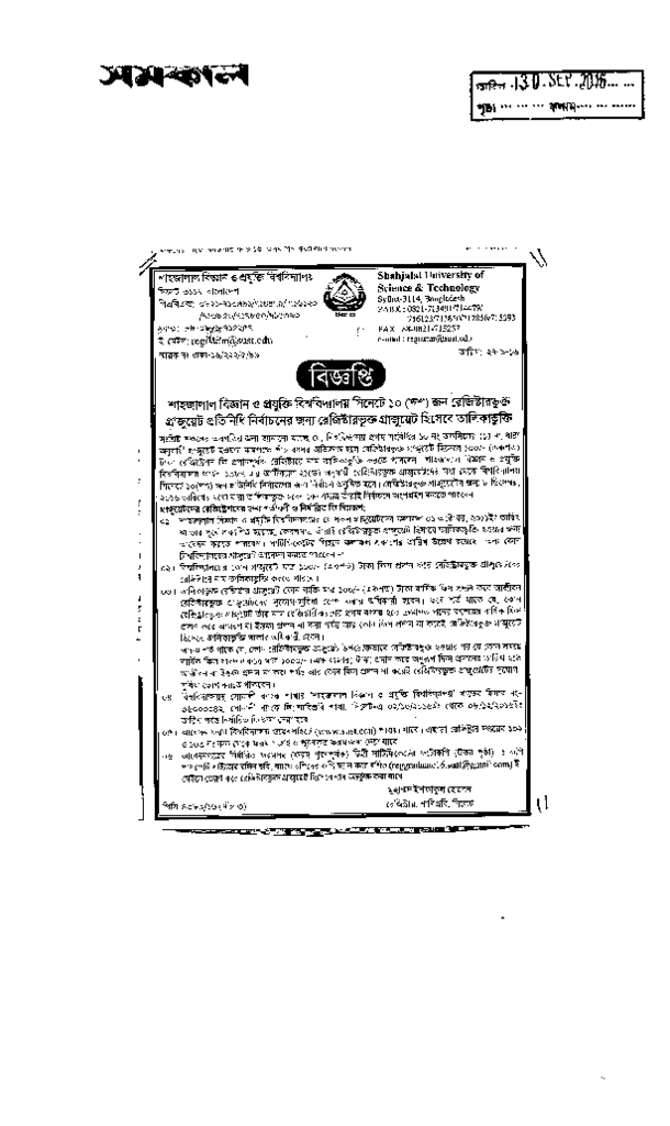 শাহজালাল বিজ্ঞান ও প্রযু্ক্তি বিশ্ববিদ্যালয় // বিজ্ঞপ্তি Published on Newspaper দৈনিক সমকাল Category Science Education Download