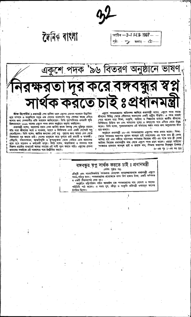 নিরক্ষরতাদূরকরবঙ্গবন্ধুরস্বপ্নসার্থককরতেচাইঃপ্রধানমন্ত্রী Published on Newspaper দৈনিক বাংলা Category Personal Opinion / Discussion / Commentary Download