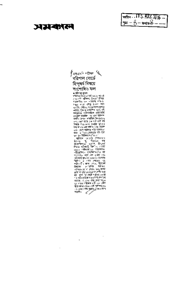 বরিশাল বোর্ডে হিন্দুধর্ম বিষয়ে সংশোধিত ফল Published on Newspaper দৈনিক সমকাল Category Public Examination Public Examination SSC Download