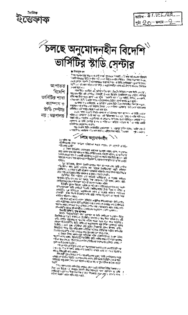 চলছে অনুমোদনহীন বিদেশী ভার্সিটির স্টাডি সেন্টার Published on Newspaper দৈনিক ইত্তেফাক Category General Education General Education Higher Education Private Download