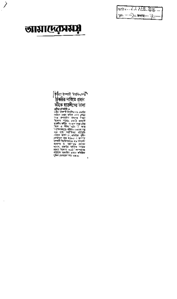 চাকরির দাবিতে প্রধান ফটকে চাত্রলীগের তালা Published on Newspaper দৈনিক আমাদের সময় Category Student Politics Download