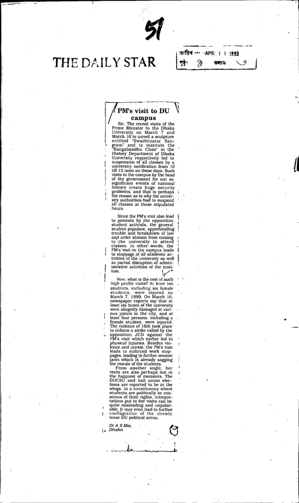 Pm's visit to du campus Published on Newspaper The Daily Star Category Personal Opinion / Discussion / Commentary Download