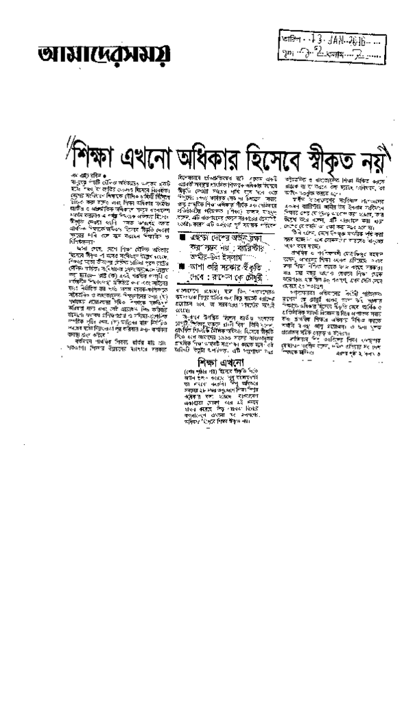 শিক্ষা এখনো অধিকার হিসেবে স্বীকৃত নয় Published on Newspaper দৈনিক আমাদের সময় Category Personal Opinion / Discussion / Commentary Download