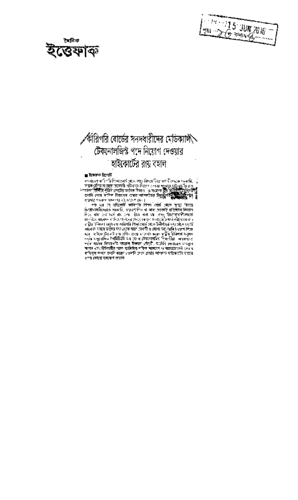 কারিগরি বোর্ডের সনদধারীদের মেডিক্যাল টেকনোলজিস্ট পদে নিয়োগ দেওয়ার হাইকোর্টের রায় বহাল