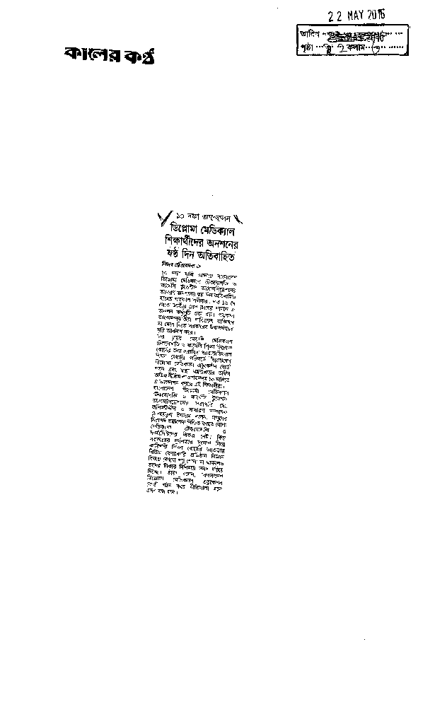 ডিপ্লোমা মেডিক্যাল শিক্ষার্থীদের অনশনের ষষ্ঠ দিন অতিবাহিত Published on Newspaper দৈনিক কালের কন্ঠ Category Technical and Vocational Education Download