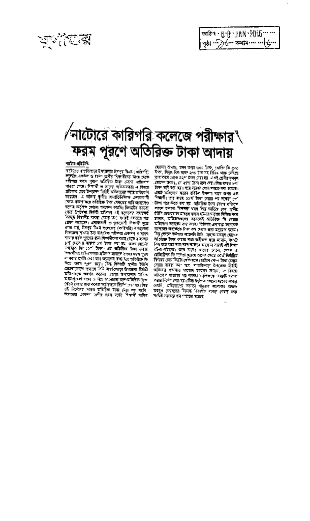 নাটোরে কারিগরি কলেজে পরীক্ষার ফরম পূরণে অতিরিক্ত টাকা আদায় Published on Newspaper দৈনিক যুগান্তর Category Technical and Vocational Education Download