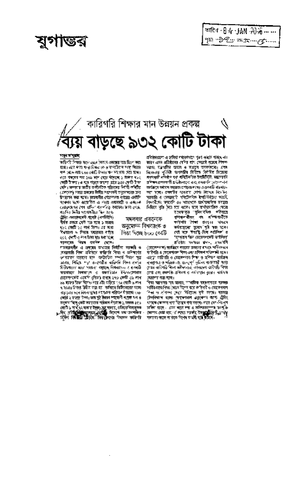 ব্যয় বাড়ছে ৯৩২ কোটি টাকা Published on Newspaper দৈনিক যুগান্তর Category Technical and Vocational Education Download