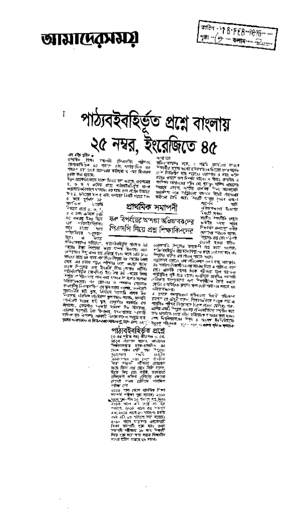 পাঠ্যবইবহির্ভূত প্রশ্নে বাংলায় ২৫ নম্বর, ইংরেজিতে ৪৫ Published on Newspaper দৈনিক আমাদের সময় Category General Education General Education Download